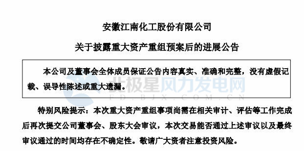 近日江南化工發(fā)布關(guān)于披露重大資產(chǎn)重組預(yù)案后的進展公告,截至公告披露日,江南化工及相關(guān)各方正在積極推進本次資產(chǎn)重組事項涉及的各項工作,標(biāo)的公司盾安新能源剝離旗下的風(fēng)機設(shè)備研發(fā)及制造業(yè)務(wù)(內(nèi)蒙古久和能