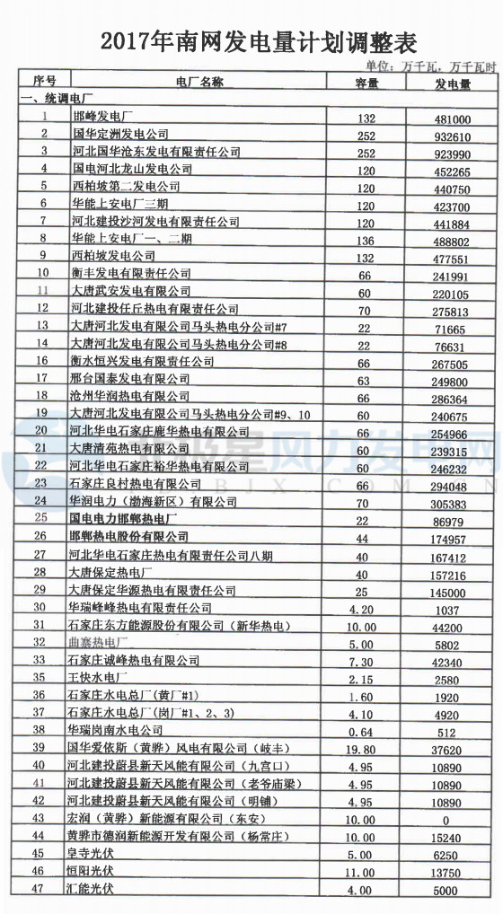 河北省發(fā)改委調(diào)整河北南網(wǎng)2017年發(fā)電量計(jì)劃:涉及4家風(fēng)電廠 發(fā)電量7.03億千瓦時(shí)(附通知)