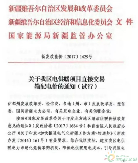 新疆電供暖用電采取直接交易  分散式電供暖的電價:平段0 224元 千瓦時,谷段0 112元 千瓦時;集中式電供暖的電價:平段0 18元 千瓦時,谷段0 09元 千瓦時?! ⌒陆姽┡秒姴扇≈苯咏灰追绞?,且電量