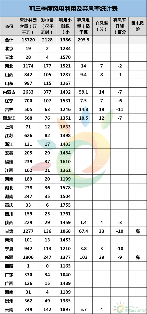 11個(gè)省區(qū)前三季度棄風(fēng)量達(dá)295.5億千瓦時(shí)!新疆棄風(fēng)102億千瓦時(shí),幾乎占據(jù)全國(guó)棄風(fēng)量三分之一!
