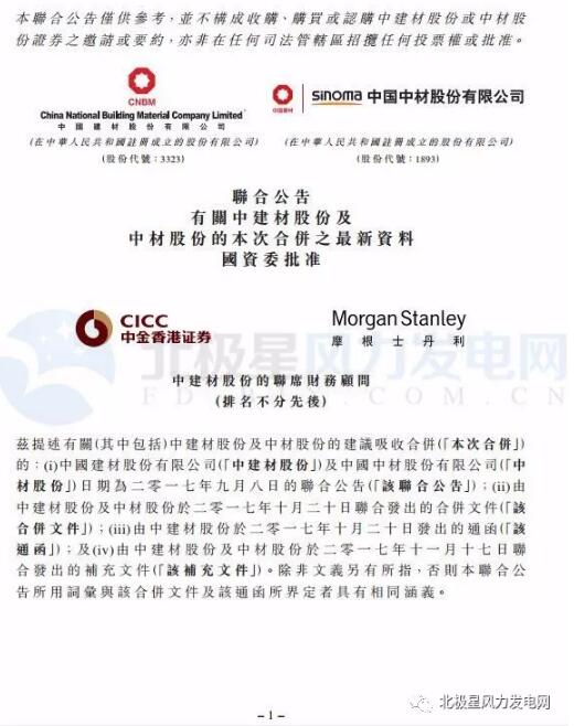 中國建材及中材股份稱,近期收到國務(wù)院國資委出具的《關(guān)于中國建材股份有限公司吸收合并中國中材股份有限公司有關(guān)問題的批覆》,國資委同意本次合并。這標志著,全球最大風電葉片制造商正式誕生。