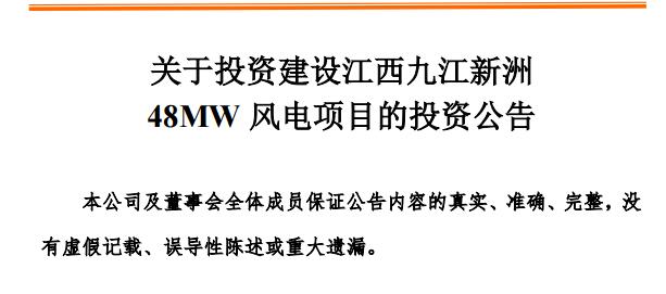 吉電股份控股子公司擬投建江西九江新洲48MW風(fēng)電項(xiàng)目 總投資約4億元