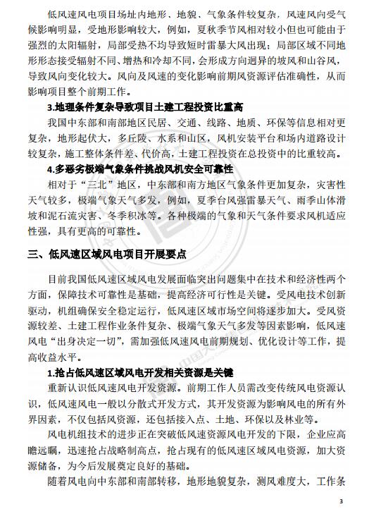 低風(fēng)速區(qū)域風(fēng)電開發(fā)前期要點(diǎn)分析目前低風(fēng)速區(qū)域風(fēng)電發(fā)展面臨的突出問(wèn)題集中在技術(shù)和經(jīng)濟(jì)性兩個(gè)方面,保障技術(shù)可靠性是基礎(chǔ),提高經(jīng)濟(jì)可行性是關(guān)鍵。低風(fēng)速風(fēng)電出身決定一切,需要加強(qiáng)低風(fēng)速風(fēng)電前期規(guī)劃、優(yōu)化設(shè)
