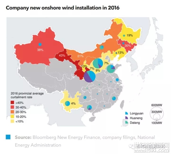 2016年,龍?jiān)?、華能和大唐三家公司81%的新建容量均位于棄風(fēng)水平較低的地區(qū)