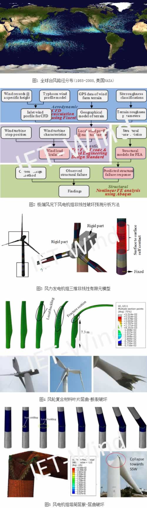 臺風具有風速幅值大、風速和風向變化快、湍流度大等特點,如何準確預(yù)測風電機組在極端風況下的高度非線性的結(jié)構(gòu)響應(yīng)是國際學術(shù)界面臨的重要挑戰(zhàn)?,F(xiàn)有研究主要采用逆向工程的研究方法,通過實地觀測結(jié)構(gòu)破壞現(xiàn)象,結(jié)合風況監(jiān)測數(shù)據(jù),定性分析機組的破壞原因。這些研究成果為我國風電機組的結(jié)構(gòu)安全性提供了寶貴經(jīng)驗。由于破壞案例具有不同特點,研究結(jié)論的準確性和普適性還有待進一步探討。