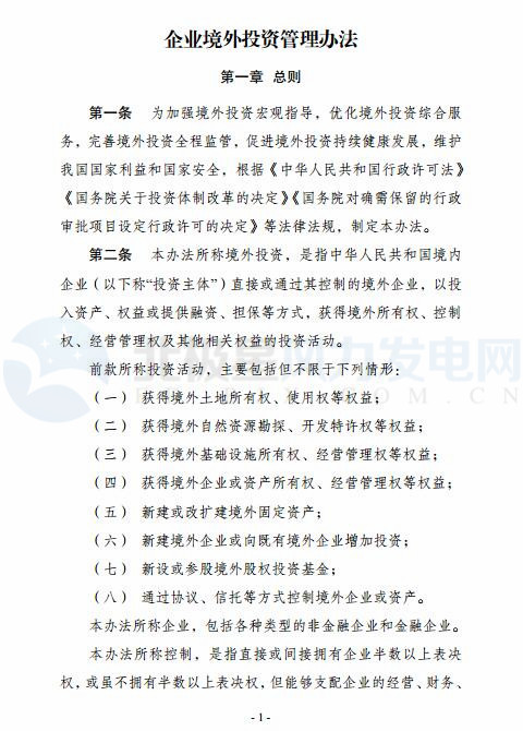 風(fēng)電企業(yè)注意了!國(guó)家發(fā)改委公布《企業(yè)境外投資管理辦法》