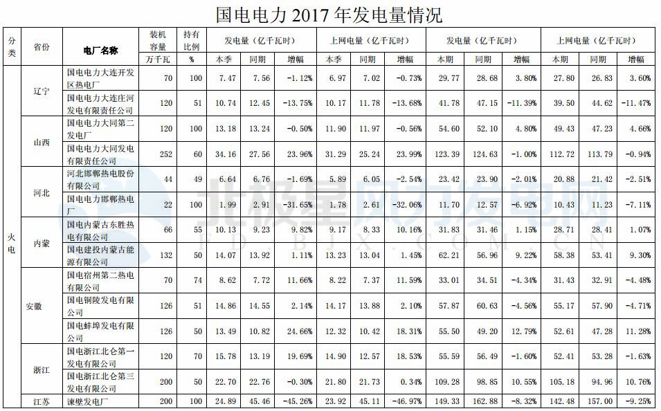 國電電力2017年10-12 月份完成發(fā)電量 514 69 億千瓦時,同比增長1 89%;上網(wǎng)電量 489 48 億千瓦時,同比增長1 53%。2017 年,國電電