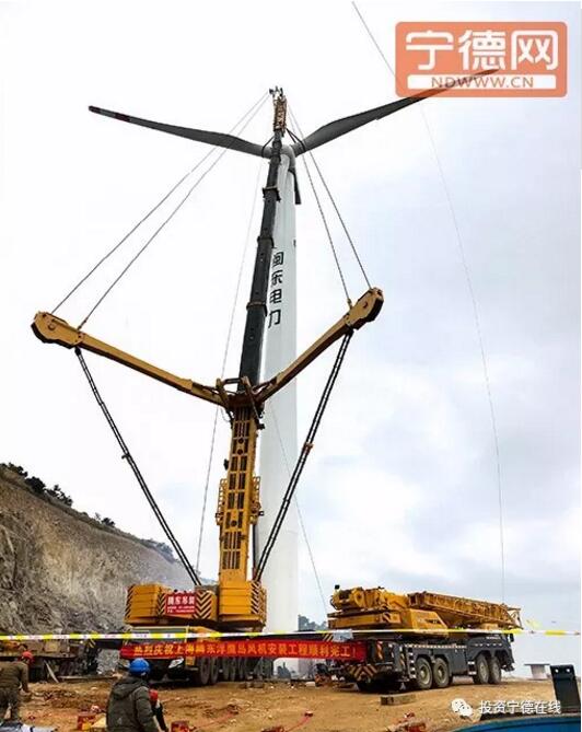 1月23日上午10時許,在霞浦浮鷹島風電項目建設(shè)現(xiàn)場,9號風機成功吊裝,標志著該項目24臺風機已全部吊裝到位。據(jù)了解,隨著風機吊裝工程的全