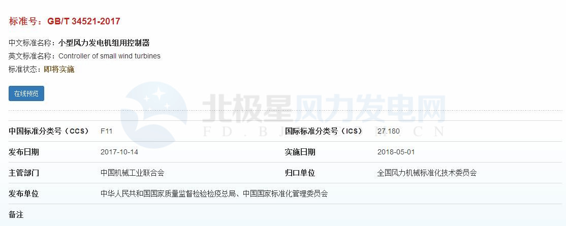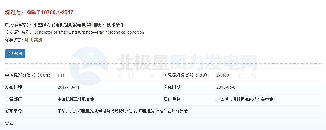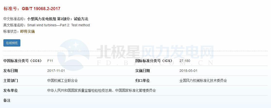 從國家標(biāo)準(zhǔn)化管理委員會(huì)獲悉,2018年2月1日起,《小型風(fēng)力發(fā)電機(jī)組》、《風(fēng)力發(fā)電機(jī)組驗(yàn)收規(guī)范》2項(xiàng)風(fēng)電標(biāo)準(zhǔn)已正式施行。另外,2018年5月1