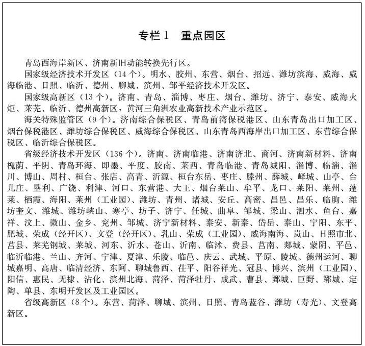 以淄博等14市國家和省級經(jīng)濟技術(shù)開發(fā)區(qū)、高新技術(shù)產(chǎn)業(yè)開發(fā)區(qū)以及海關(guān)特殊監(jiān)管區(qū)等為重點,創(chuàng)新園區(qū)管理運營機制,明確各市產(chǎn)業(yè)發(fā)展方向,培育特色經(jīng)濟和優(yōu)勢產(chǎn)業(yè),打造若干具有核心競爭力的區(qū)域經(jīng)濟增長點。