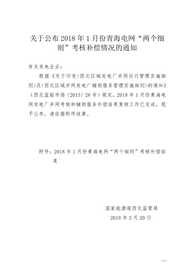 國家能源局西北監(jiān)管局公布2018年1月份青海電網(wǎng)“兩個細(xì)則”考核補償結(jié)果,