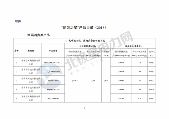工信部發(fā)布《“能效之星”產(chǎn)品目錄(2018)》(全名單)