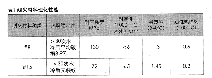 讓管位置管排采用讓管后,在冷渣機外筒內(nèi)部形成了兩組受熱區(qū)。為了保證受熱區(qū)內(nèi),外殼鋼板千燒無冷卻造成鋼板碳化變形,在受熱區(qū)內(nèi)填充耐火材料。耐火材料采用結(jié)構(gòu)如圖8,另外采用耐火材料澆筑可以保護雙筒冷渣機內(nèi)部支撐件的整體附陛。耐火材料理化性能如表1。