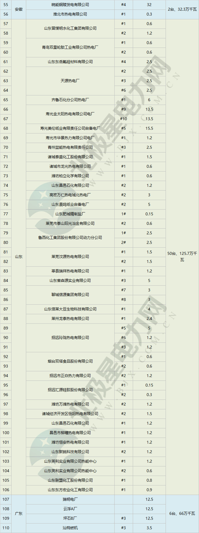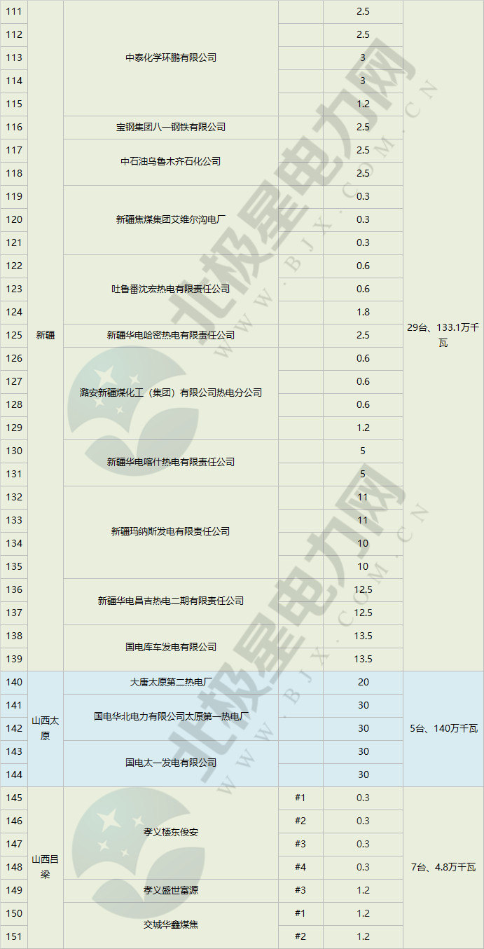 電力君從已公布且能被電力君搜索到的各地2018年煤電行業(yè)淘汰落后產(chǎn)能計劃中梳理出了關(guān)停(含已關(guān)停/計劃關(guān)停,公示/公告等情況)清單,北京、河北、廣西、廣東、黑龍江、寧夏、安徽、山東、新疆等地已經(jīng)完成或超額完成了國家能源局下達的第一批的任務(wù),山西省的情況電力君只搜索到了太原和呂梁的文件,這兩地關(guān)?;?qū)㈥P(guān)停144.8萬千瓦煤電機組,已占國家能源局下達給山西省任務(wù)的75%。