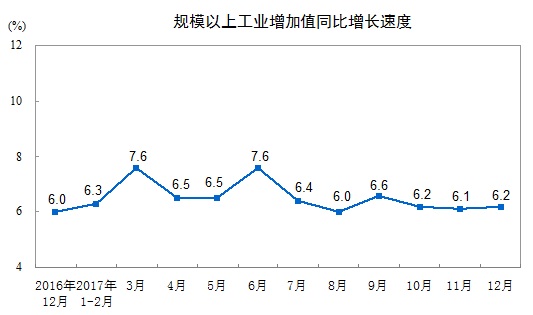 2017年12月份規(guī)模以上工業(yè)增加值增長6.2%
