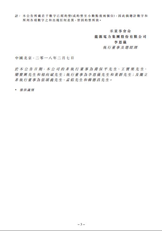 龍?jiān)措娏?00916)發(fā)布公告,2018年1月,該集團(tuán)按合并報(bào)表口徑完成發(fā)電量494 2萬(wàn)兆瓦時(shí),較2017年同比增加30 96%。其中,風(fēng)電增加38 81%,火