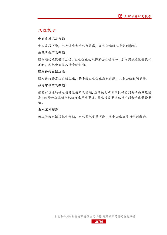 風險提示: 電力需求不及預期;煤炭價格大幅上漲;核電審批不及預期等