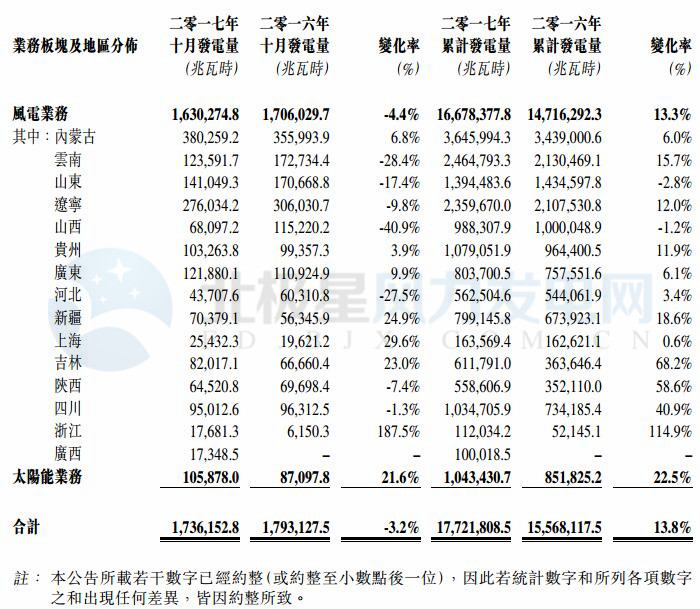 華能新能源10月風(fēng)電發(fā)電量16.30億千瓦時 同比下降4.4%