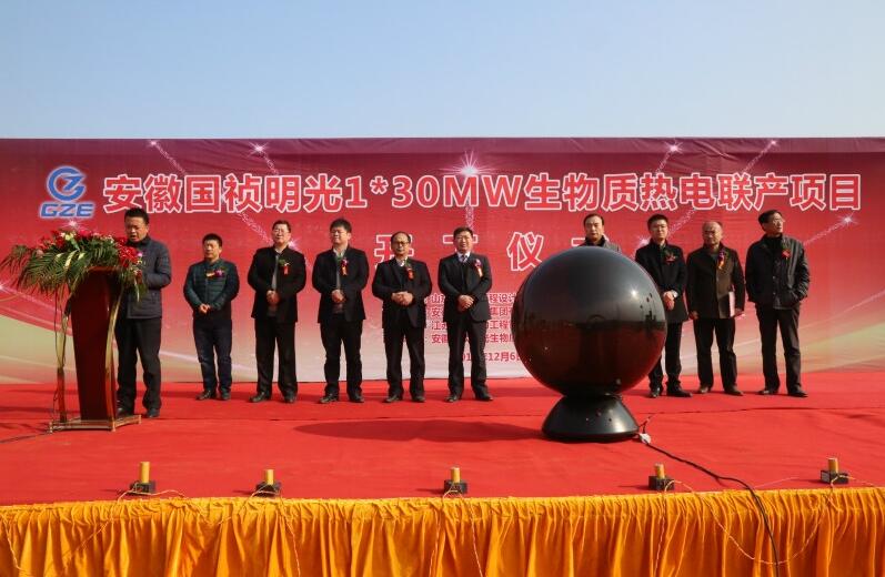 12月6日上午,明光國禎生物質(zhì)熱電聯(lián)產(chǎn)項(xiàng)目開工儀式在我市化工集中區(qū)內(nèi)舉行。市委常委、市委辦公室主任程軍才出席儀式并致辭,副市長司學(xué)軍主持儀式。山東陽光工程設(shè)計(jì)院副院長李武生,安徽阜陽建工集團(tuán)總經(jīng)理沈如良,江蘇蘇安電力工程公司總經(jīng)理夏春宴,安徽國禎生態(tài)科技公司總經(jīng)理丁海,安徽國禎明光生物質(zhì)熱電公司總經(jīng)理徐建東,以及滁州市能源局、滁州市供電公司,我市發(fā)改委、經(jīng)開區(qū)、招商局等職能部門負(fù)責(zé)人出席開工儀式并共同按動啟動球。