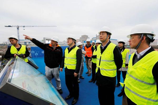 2月25日下午,防城港市委書(shū)記李延強(qiáng)、市長(zhǎng)班忠柏上任后首次到訪防城港核電基地,調(diào)研項(xiàng)目生產(chǎn)和工程建設(shè)推進(jìn)情況,實(shí)地察看建設(shè)中的防城港核電二期工程“華龍一號(hào)”示范項(xiàng)目。 圖片來(lái)源:中廣核集團(tuán)官網(wǎng)