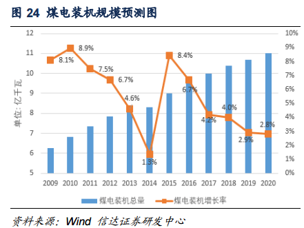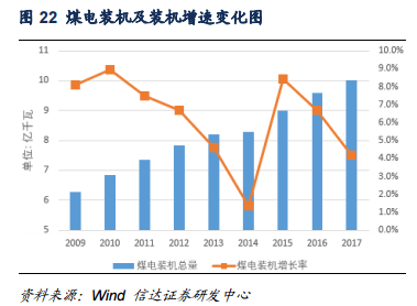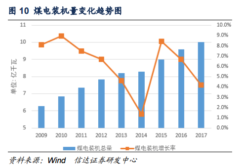 我們預(yù)計(jì),2018年煤電裝機(jī)總量約為10.4億千瓦,裝機(jī)增速大概率不會(huì)超過(guò)4%,未來(lái)煤電裝機(jī)總量將繼續(xù)增加,但裝機(jī)增速將明顯放緩。