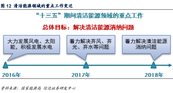 2018年能源工作會(huì)議提出,要聚焦綠色發(fā)展,著力解決清潔能源消納問(wèn)題,著力推進(jìn)能源結(jié)構(gòu)調(diào)整戰(zhàn)略工程,統(tǒng)籌推進(jìn)煤炭清潔高效利用,大力推進(jìn)能源清潔發(fā)展水平。清潔能源發(fā)展已經(jīng)從過(guò)去的大規(guī)模加速發(fā)展轉(zhuǎn)變?yōu)榻鉀Q消納了。