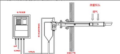 這種測量是直插在線式測量,也即測量電池位于被測煙氣之中,探頭頂端處于煙道當中三分之一處的位置。