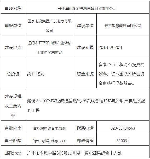一、開(kāi)平翠山湖燃?xì)鉄犭婍?xiàng)目核準(zhǔn)前公示