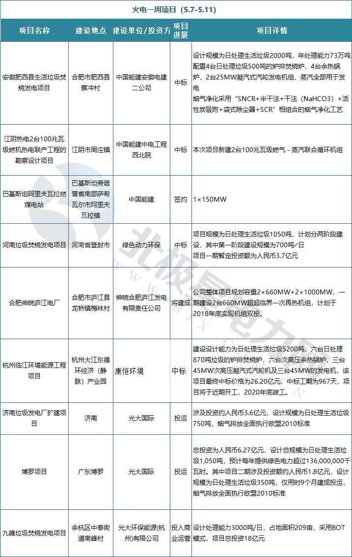 一周核準(zhǔn)、中標(biāo)、開工火電項目匯總(5.7-5.11)