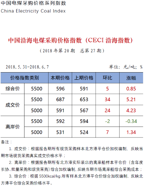 今日,中電聯(lián)公布中國(guó)沿海電煤采購(gòu)價(jià)格指數(shù)(CECI沿海指數(shù))第27期數(shù)據(jù):