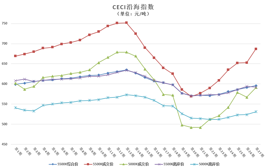中電聯(lián)公布沿海電煤采購(gòu)指數(shù)CECI第27期:5500大卡電煤成交價(jià)或突破700元/噸