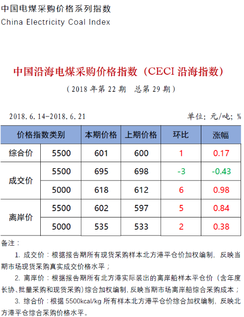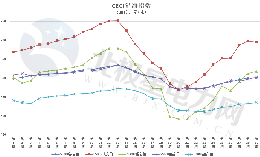 中電聯(lián)公布沿海電煤采購指數(shù)CECI第29期:5500大卡電煤成交價(jià)未突破700元/噸