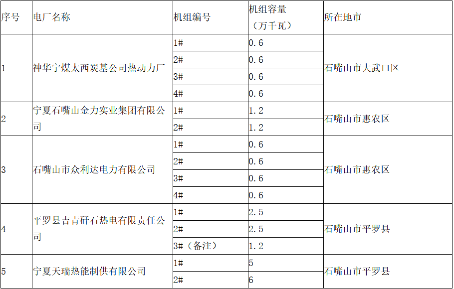 備注:列入計劃的平羅縣吉青矸石熱電有限責(zé)任公司3#機組已于2013年予以關(guān)停。