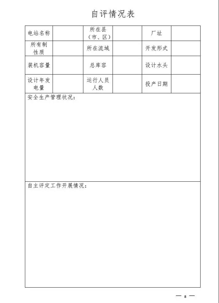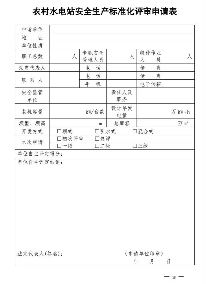 農(nóng)村水電站安全生產(chǎn)標(biāo)準(zhǔn)化評審申請表(見附件2);