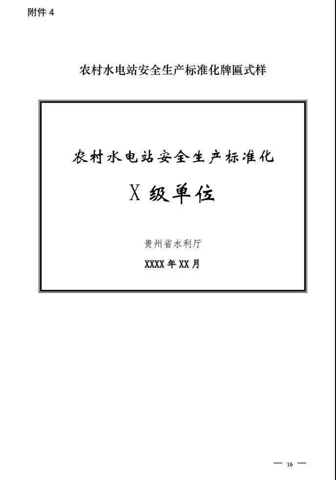 貴州省水利廳 : 關(guān)于印發(fā)《貴州省農(nóng)村水電站安全生產(chǎn)標(biāo)準(zhǔn)化達(dá)標(biāo)評級實(shí)施細(xì)則》的通知