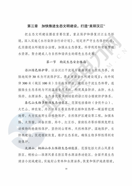 一、《規(guī)劃》實(shí)施要以習(xí)近平新時(shí)代中國特色社會主義思想為指導(dǎo),全面貫徹黨的十九大和十九屆二中、三中全會精神,落實(shí)黨中央、國務(wù)院決策部署,堅(jiān)持穩(wěn)中求進(jìn)工作總基調(diào),堅(jiān)持新發(fā)展理念,按照高質(zhì)量發(fā)展的要求,統(tǒng)籌推進(jìn)“五位一體”總體布局和協(xié)調(diào)推進(jìn)“四個(gè)全面”戰(zhàn)略布局,以供給側(cè)結(jié)構(gòu)性改革為主線,主動融入“一帶一路”建設(shè)、京津冀協(xié)同發(fā)展、長江經(jīng)濟(jì)帶發(fā)展等國家重大戰(zhàn)略,堅(jiān)決打好防范化解重大風(fēng)險(xiǎn)、精準(zhǔn)脫貧、污染防治三大攻堅(jiān)戰(zhàn)。圍繞改善提升漢江流域生態(tài)環(huán)境,共抓大保護(hù)、不搞大開發(fā),加快生態(tài)文明體制改革,推進(jìn)綠色發(fā)展,著力解決突出環(huán)境問題,加大生態(tài)系統(tǒng)保護(hù)力度;圍繞推動質(zhì)量變革、效率變革、動力變革,推進(jìn)創(chuàng)新驅(qū)動發(fā)展,加快產(chǎn)業(yè)結(jié)構(gòu)優(yōu)化升級,進(jìn)一步提升新型城鎮(zhèn)化水平,打造美麗、暢通、創(chuàng)新、幸福、開放、活力的生態(tài)經(jīng)濟(jì)帶。