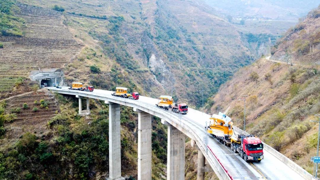 1月12日,四輛載有世界單機(jī)容量最大水輪發(fā)電機(jī)組座環(huán)的卡車緩緩駛?cè)氚Q灘金沙江大橋,標(biāo)志著白鶴灘工程百萬千瓦水輪發(fā)電機(jī)組首臺座環(huán)正式運(yùn)抵施工區(qū)。