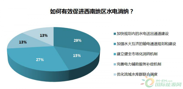 在建立外送通道的同時(shí),針對(duì)有效促進(jìn)西南地區(qū)水電消納問(wèn)題,同比例(13%)的受訪者認(rèn)為關(guān)鍵在于完善電力輔助服務(wù)補(bǔ)償機(jī)制和優(yōu)化流域水庫(kù)群聯(lián)合調(diào)度?!锻ㄖ芬裁鞔_將創(chuàng)新體制機(jī)制,促進(jìn)水電消納,明確鼓勵(lì)四川、云南等省利用富余水電邊際成本低的優(yōu)勢(shì),積極開展水電與載能企業(yè)專線供電試點(diǎn),增加本地消納和外送,要推進(jìn)跨省跨區(qū)水電市朝交易,鼓勵(lì)開展電力現(xiàn)貨市場(chǎng)試點(diǎn),形成有利于水電優(yōu)化配置的市朝機(jī)制和價(jià)格機(jī)制。