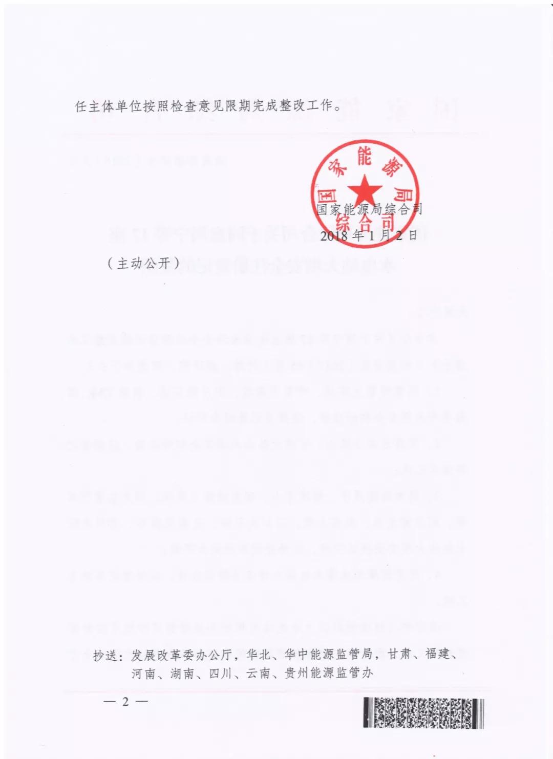 國(guó)家能源局關(guān)于同意周寧等17座水電站大壩安全注冊(cè)登記的復(fù)函