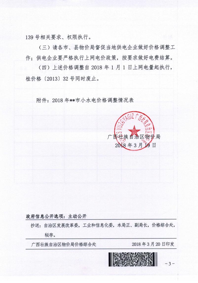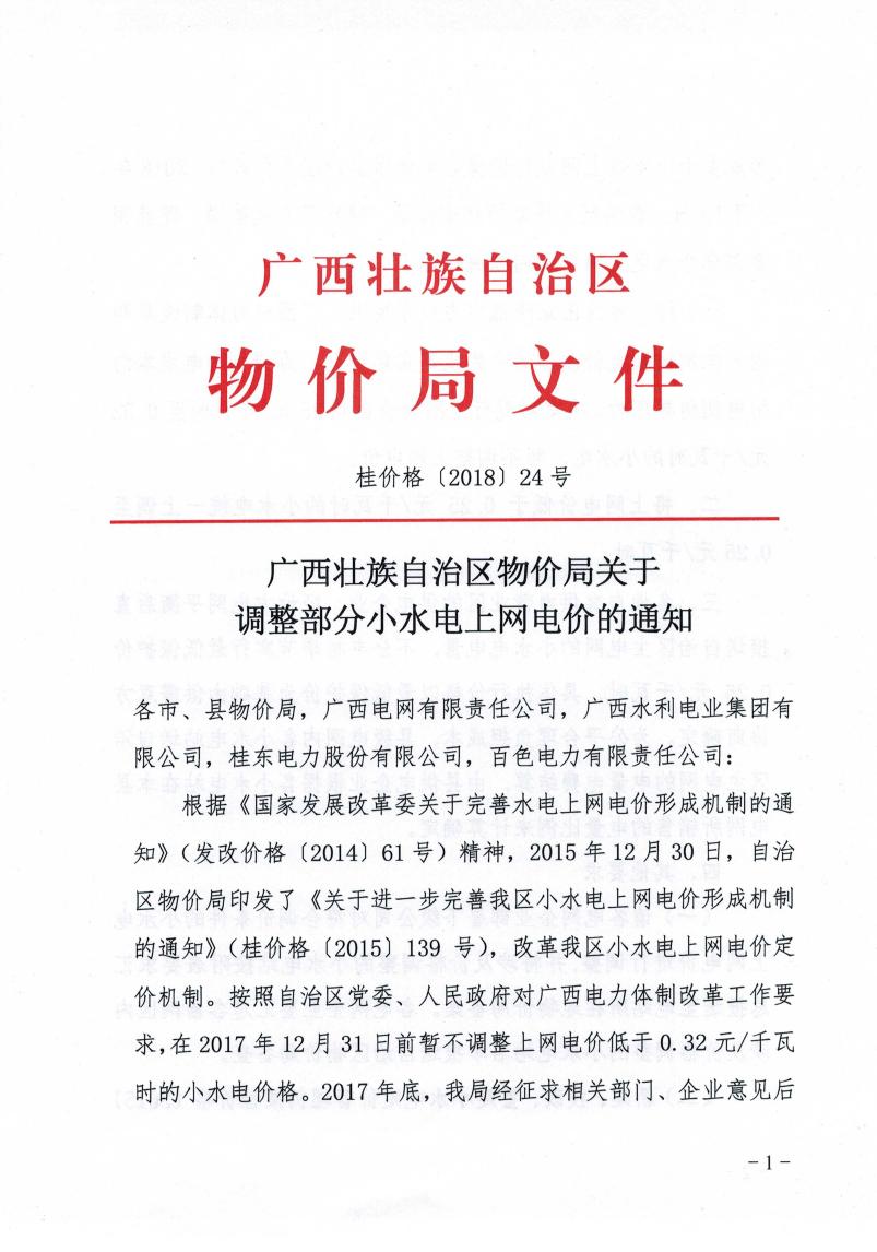 附:《廣西壯族自治區(qū)物價(jià)局關(guān)于調(diào)整部分小水電上網(wǎng)電價(jià)的通知》
