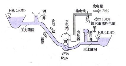 抽水蓄能電站相當于一個“蓄電池”,在用電低谷時把下水庫的水抽到上水庫儲存起來,然后到用電高峰時,將上水庫高位水的勢能轉化為動能,帶動發(fā)電機組發(fā)電,將低谷蓄電量轉化為急需的尖峰需電量,實現(xiàn)能源的高效、靈活利用。