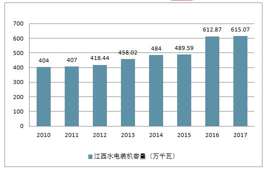2010-2017 年江西水電裝機(jī)容量(萬千瓦)