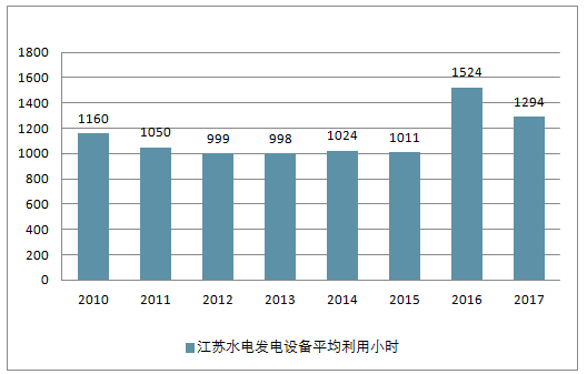2010-2017年中國江蘇水電發(fā)電設(shè)備平均利用小時(shí)