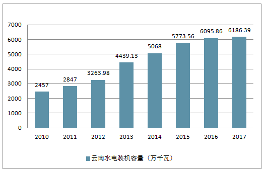 2010-2017 年云南水電裝機(jī)容量(萬千瓦)