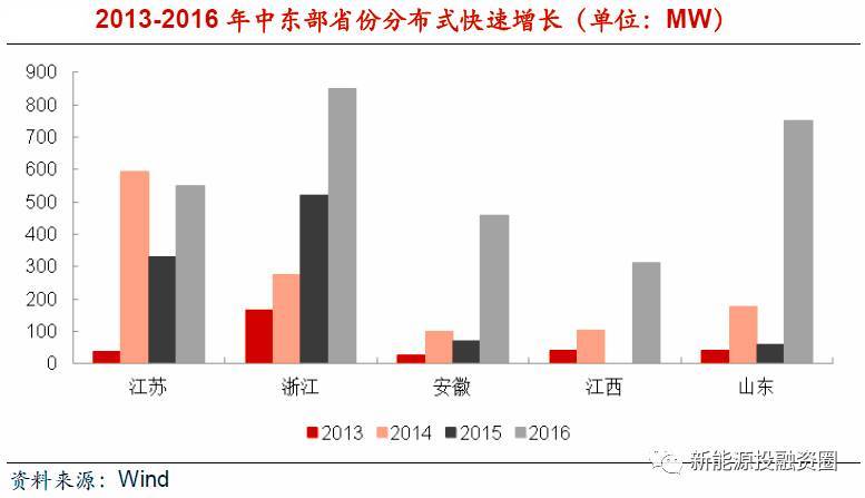2017年上半年,我國(guó)分布式光伏新增裝機(jī)達(dá)到7.1GW,超過(guò)去年全年裝機(jī)(4.3GW)將近65%,其中山東、安徽、浙江三省分布式新增裝機(jī)3.9GW,占全國(guó)分布式電站新增裝機(jī)比重超過(guò)50%。