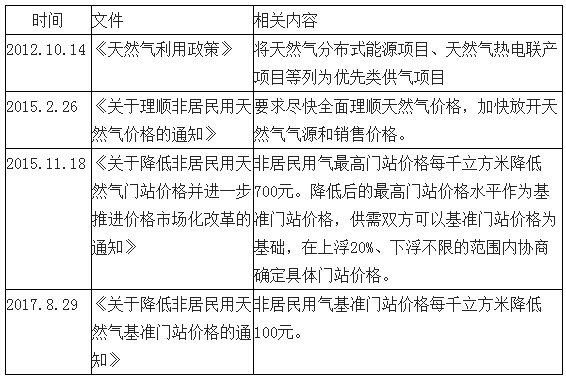 另一方面,近年來,國家陸續(xù)制訂天然氣政策對(duì)天然氣分布式能源行業(yè)進(jìn)行扶持:2012年出臺(tái)的《天然氣利用政策》,將天然氣分布式能源項(xiàng)目、天然氣熱電聯(lián)產(chǎn)項(xiàng)目等列為優(yōu)先類供氣項(xiàng)目;2015年11月,發(fā)改委發(fā)布通知,非居民用氣門站價(jià)格每千立方米降低700元;2017年8月,發(fā)改委再次調(diào)整非居民用氣基準(zhǔn)門站價(jià)格,每千立方米下調(diào)100元。隨著天然氣價(jià)格的下調(diào),天然氣交易市場化推進(jìn),世紀(jì)新能源的成本不斷下降。