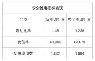 就安全維度而言,新能源企業(yè)負債率低于能源行業(yè)整體水平,但流動比率高于能源行業(yè)整體水平,且僅次于油氣行業(yè)的流動比率。這說明在市場發(fā)展尚不穩(wěn)定的階段,新能源企業(yè)風險意識高,在資金運營方面比較謹慎。