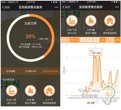 亞坦能源具有自主研發(fā)的微信監(jiān)控系統(tǒng),比第三方系統(tǒng)更懂得客戶的需求,更及時響應可能出現(xiàn)的問題和客戶的疑問。