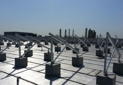 屋頂分布式光伏基礎(chǔ)根據(jù)屋頂形式的不同,主要分為夾具固定式基礎(chǔ)和配重塊基礎(chǔ)兩種,下面小編就以北京市某商業(yè)樓混凝土上人屋面為例,對(duì)屋頂分布式光伏混凝土配重塊基礎(chǔ)進(jìn)行初步設(shè)計(jì)。