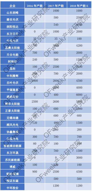 其次是有望后來者居上的HIT電池,2017年國(guó)內(nèi)HIT電池已經(jīng)形成產(chǎn)能1GW,但是產(chǎn)量有限,僅為60MW,平均轉(zhuǎn)化效率為22.7%,預(yù)計(jì)2018年將迎來異質(zhì)結(jié)發(fā)展元年,2018年規(guī)劃產(chǎn)能將為2.5GW,總產(chǎn)能將達(dá)到3.5GW。